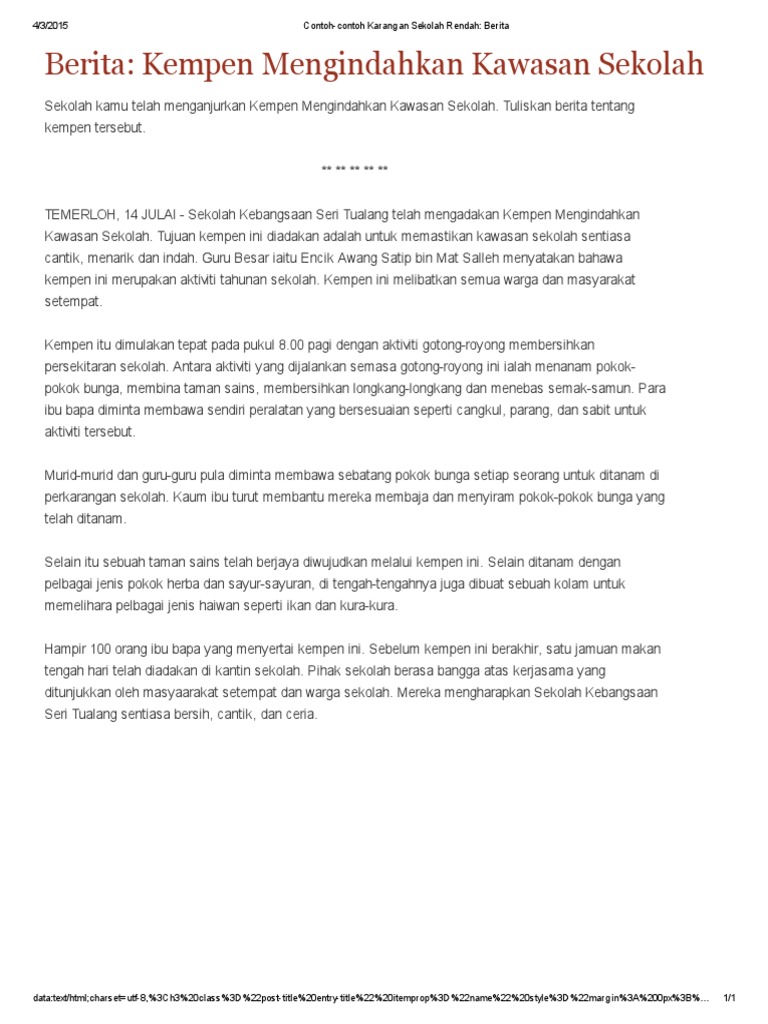 Contoh Contoh Karangan Sekolah Rendah Berita Kempen Mengindahkan Kawasan Sekolah Pdf
