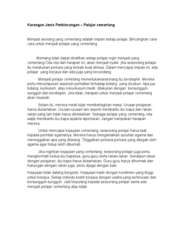 Karangan Jenis Perbincangan Pelajar Cemerlang Pdf